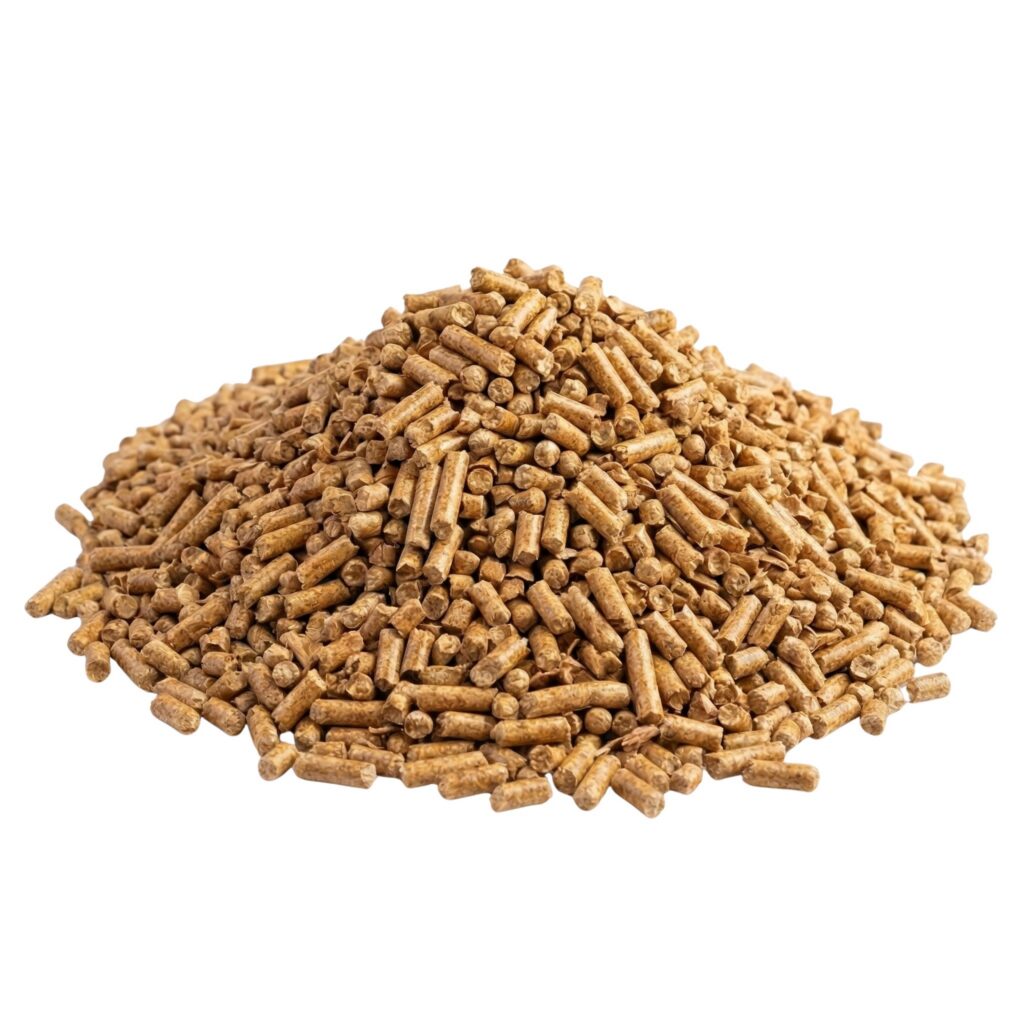 Small cylindrical pellets made from wood and agricultural residues, dried and compressed for efficient combustion and automated feeding systems.