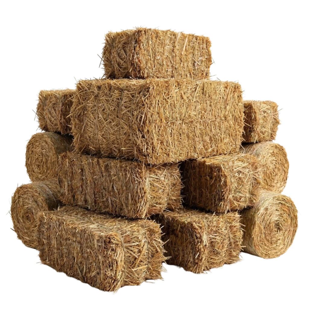 Densely compressed bales of crop residues (straw, husks, stalks), designed for efficient storage, transport, and industrial energy use.
